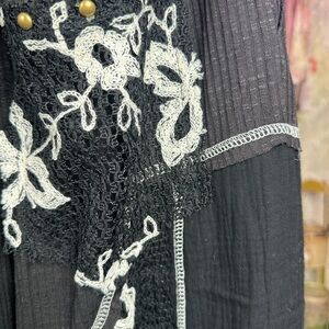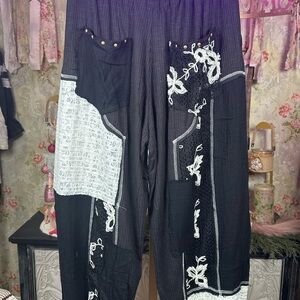 NWOT Stylish black pants with intricate floral embroidery. Perfect for a chic and comfortable look. NWOT
