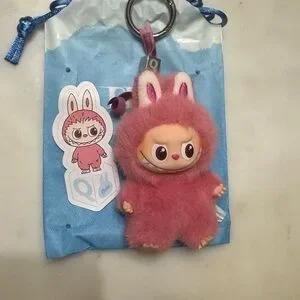 You do not have to guess any longer! Represent the letter “Q” with this authentic pin for love letter labubu plush pendant! The labubu features a metal letter charm above the head and matching letter embroidery on the back. This is a perfect and trendy accessory to show your style! Wear it as a bag charm, keychain, or other way to showcase your labubu. The bag and sticker are included! No box!