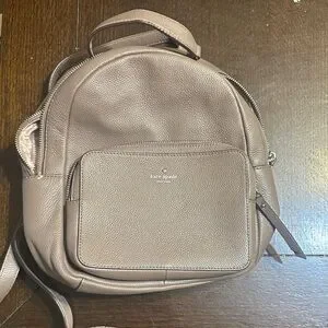Elegant taupe leather backpack by Kate Spade. Features front pocket and adjustable straps.