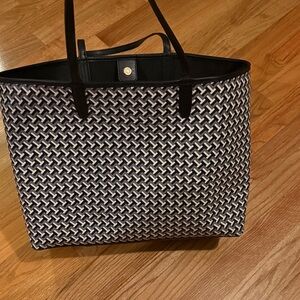 Elevate your style with this chic black and white tote bag. Perfect for any occasion, this bag combines elegance and functionality.