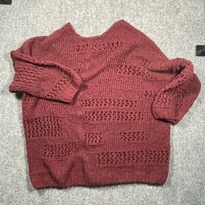 Free People Cardigan Sweater Chunky Knot Maroon Burgundy M/L Boho Cottagecore