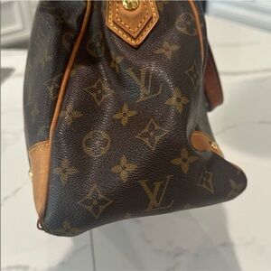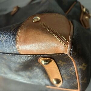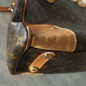Handles have darken from its use corner has minor pipping on one side. Monogram looks great no cracks or tears.