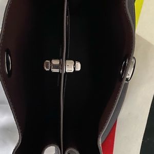 Elegant gray leather bag. Features a spacious interior. Includes adjustable shoulder strap.