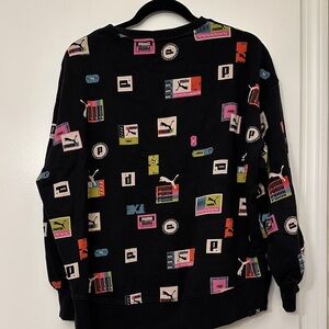 Puma Women's love oversized AOP crew neck sweatshirt sz small