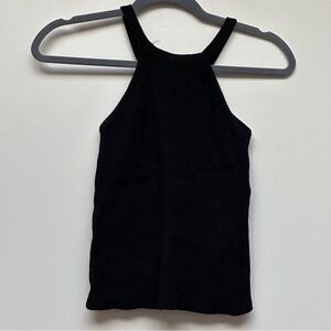 Murmuring Ribbed Halter Tank Top Set Black Taupe Built-In Bra Cami Size F