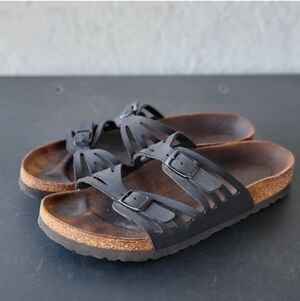 Birkenstock Granada sandals in EU size 37 (US Women’s 6.5-7). Classic leather upper with the supportive Birkenstock cork footbed.