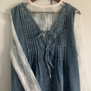 Stylish blue denim jumpsuit with wide legs and front detailing. Perfect for casual outings. Size Xl new with tags, oversized fit