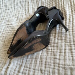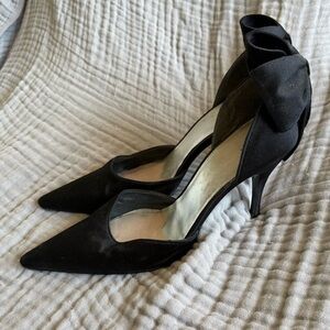 Stuart Weitzman Women’s 39 Vintage Black Point Toe Pumps Back Bow Satin Dressy