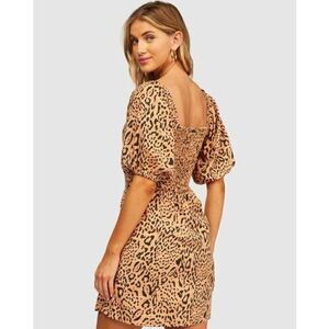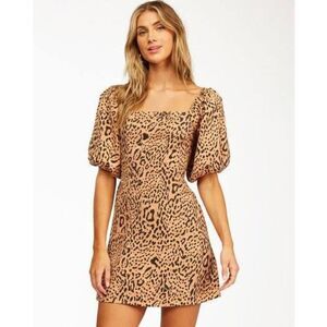 Billabong Women's Paradise Leopard Print Puff Sleeve Mini Dress Brown Size XS