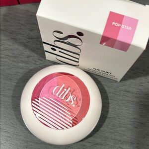 The Dibs Baked Blush Duet Shade Pop Star is a full-size baked powder blush in a duo shade of Poppy Pink and Poppy Coral. The product is from the brand Dibs and is designed to provide a beautiful pop of color to the cheeks. Perfect for adding a vibrant and fresh look to any makeup application, this blush is in a compact form and convenient for on-the-go touch-ups.