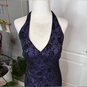 Byer Too Purple Halter Maxi Dress | Floral Burnout | Size M | USA Made