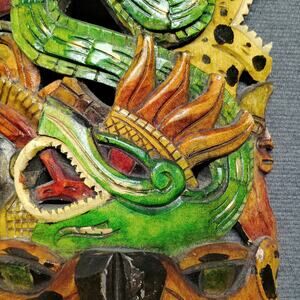 Mexican Folk Art Hand Carved Wooden Mayan Mask