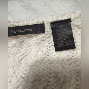 Liz Claiborne Women’s 2X Cable Knit Sweater Cream Ivory V-Neck Cozy Classic