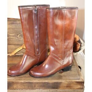 Step into retro rainy-day style with these vintage Sears “Rainbows” waterproof boots, Made in the USA and designed for durability, warmth, and all-weather wear. These tall boots feature a classic equestrian silhouette, warm fuzzy lining, and a waterproof vinyl exterior perfect for rain or mud season.