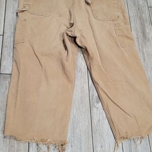 Carhartt Brown Canvas Bib Overalls Double Knee 46 X 25 Distressed