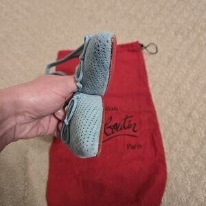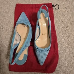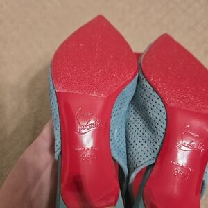 Size 36.5 and fit like size 6.5. They are in excellent condition, but there are a few marks, which are documented in the photos. I added sole protectors, and the red soles barely have any signs wear.