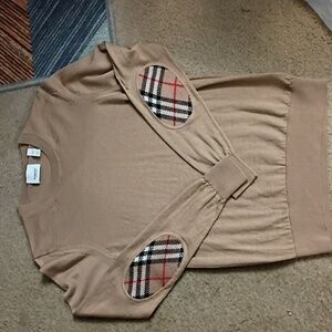 Burberry Tan Patchwork Sleeve Wool Sweater S/P