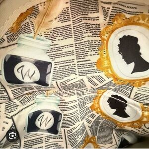 Elegant Loungefly backpack with Bridgerton theme. Features blue and white patterns. Includes unique embellishments.