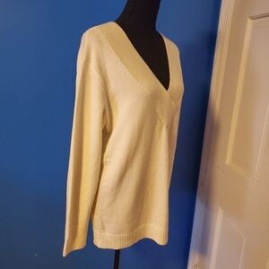 NWT Anthropologie Off White Oversized Vneck Sweater Size Small, Soft & Comfy