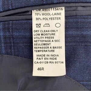 • Features: Notched lapel, double vents, flap pockets, fully lined, 70% Wool/30% Polyester