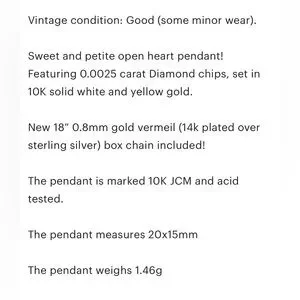 Vintage 10K Gold Open Heart Diamond Pendant: Dainty Feminine Charm