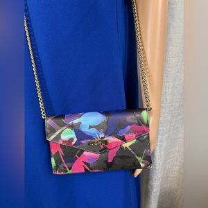 Trina Turk Evening Crossbody Bag Floral Print Gold Chain Strap