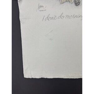 Vintage 90s Cat Animal Art Cute I Don't Do Mornings Fade White Shirt Tultex Tag