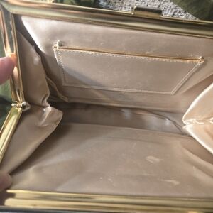 Vintage Ande Olive Green Velour/Suede Clutch Bag Gold Hardware 12" X 7.5" 1950's