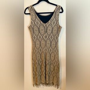 HARLOW Vintage Pullover Dress SZE 10 Tan Lace over Black Bodice Party or Formal