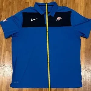 Oklahoma City Thunder | Men’s. Stylish Nike polo with blue and black design. Features logo on chest. Ideal for sports or casual wear. Great used condition!