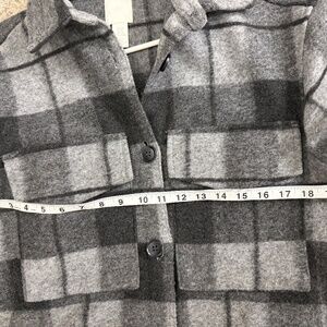 H&M Long Shirt Jacket Shacket Lightweight Coat Plaid Gray Black NWOT XS