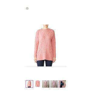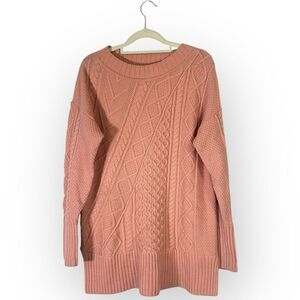 J Crew Cable Knit Patchwork Wool Blend Tunic Sweater K2428 Seashell Pink Medium