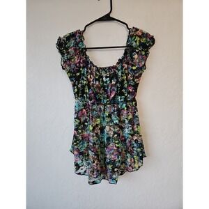 Almost Famous Sz Small Y2k Babydoll Sheer Blouse Floral whimsigoth fairygrunge