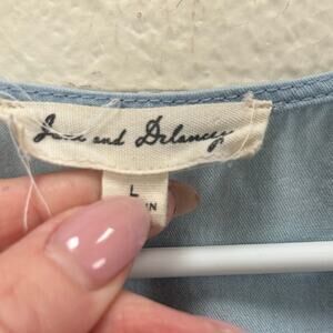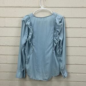 Anthropologie Jane and Delancy Blue Ruffled Blouse size L. Approx. measurements 18” chest flat across, 23” length.