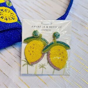 Viral Beaded Lemon Bag Earrings Set Summer Statement NWT