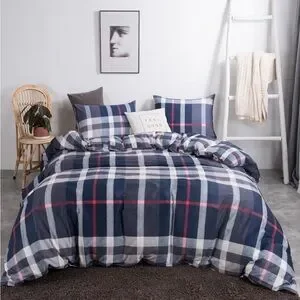 Enhance your bedroom with this stylish plaid duvet. Featuring a classic navy and white design, this set adds a touch of elegance to any decor.