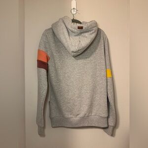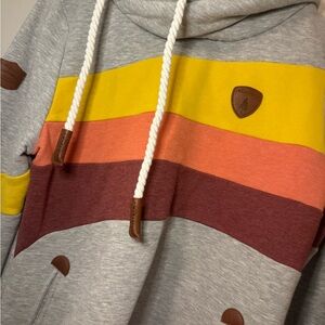 Stylish Wanakome hoodie for women. Features vibrant pink, orange, and yellow stripes. Comfortable and trendy design.
