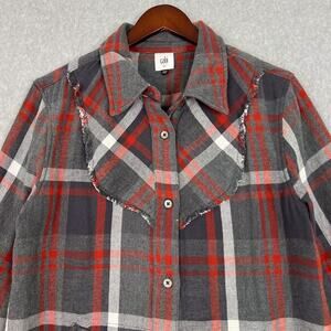 Cabi Gray Red Plaid Flannel Tavern Button Up Shirt Shacket Size Medium