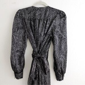 ZARA Paisley Print Grey/Black Maxi Tie Waste Dress Size S