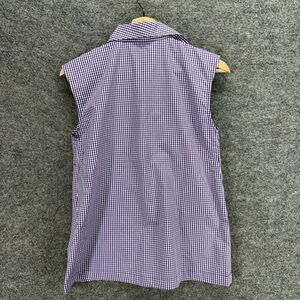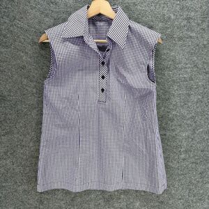 Unbranded Shirt Women M Medium Blue Plaid Button Up Collared Sleeveless Casual