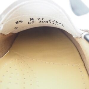 These G.H. Bass Weejuns blend a sleek black leather exterior with a crisp white vamp and traditional saddle strap, offering a polished aesthetic that effortlessly transitions from day to night. The meticulously stitched detailing and smooth leather finish exude quality craftsmanship, while the comfortable interior ensures all-day wearability. Perfect for business casual settings, weekend outings, or adding a touch of preppy charm to your ensemble.