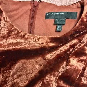 Maggy London Burnt Red Crushed Velvet Cold Open Shoulder Dress Sz 4