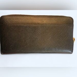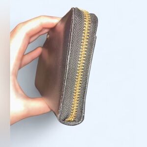 Interior has minor marks. Zipper works smoothly and wallet is fully functional.