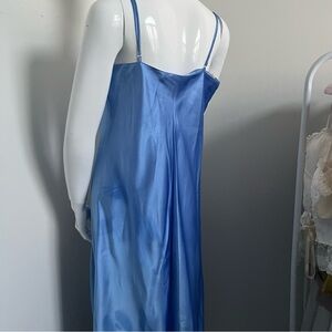 NWT Vintage Blue Satin Lace Trim Slip Dress 90s Lingerie Style Maxi Deadstock L