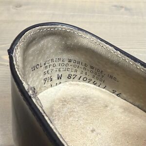 Wolverine World Wide, Inc. US Military dress shoes. Dated 2001. Black leather upper. Rubber sole.