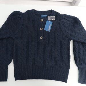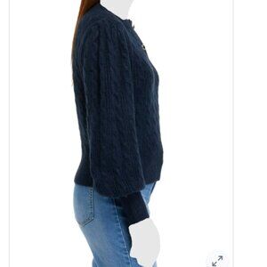 This Biltmore Cable Knit Henley Sweater adds a touch of glam to your cold-weather wardrobe. In a rich blue hue, it features a classic cable knit texture, Henley-style button neckline, and jeweled embellishments that catch the light. Brand new with tags, this pullover is perfect for holiday gatherings, cozy nights out, or elevating your everyday look.
