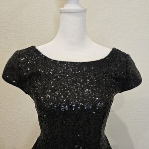 Shine in this elegant black sequin dress, perfect for any special occasion. Its classic design offers a flattering fit and timeless style.