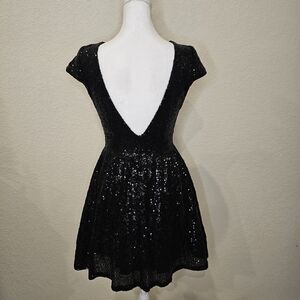 B. Darlin Black Sequin Dress A-line Cap Sleeve Sz 5/6