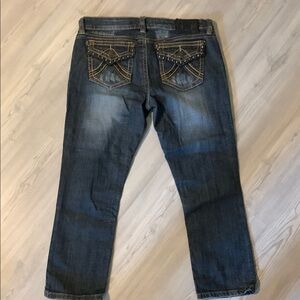 Experience the perfect blend of style and comfort with these Rock Revival Blue Capris. Featuring a medium-dark wash with natural fading, these capris offer a vintage, worn-in look. The relaxed cut and subtle distressing make them a versatile addition to any wardrobe.