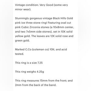 Black Hills Gold Pink Ice Ring: 10K solid yellow gold Size 7.25